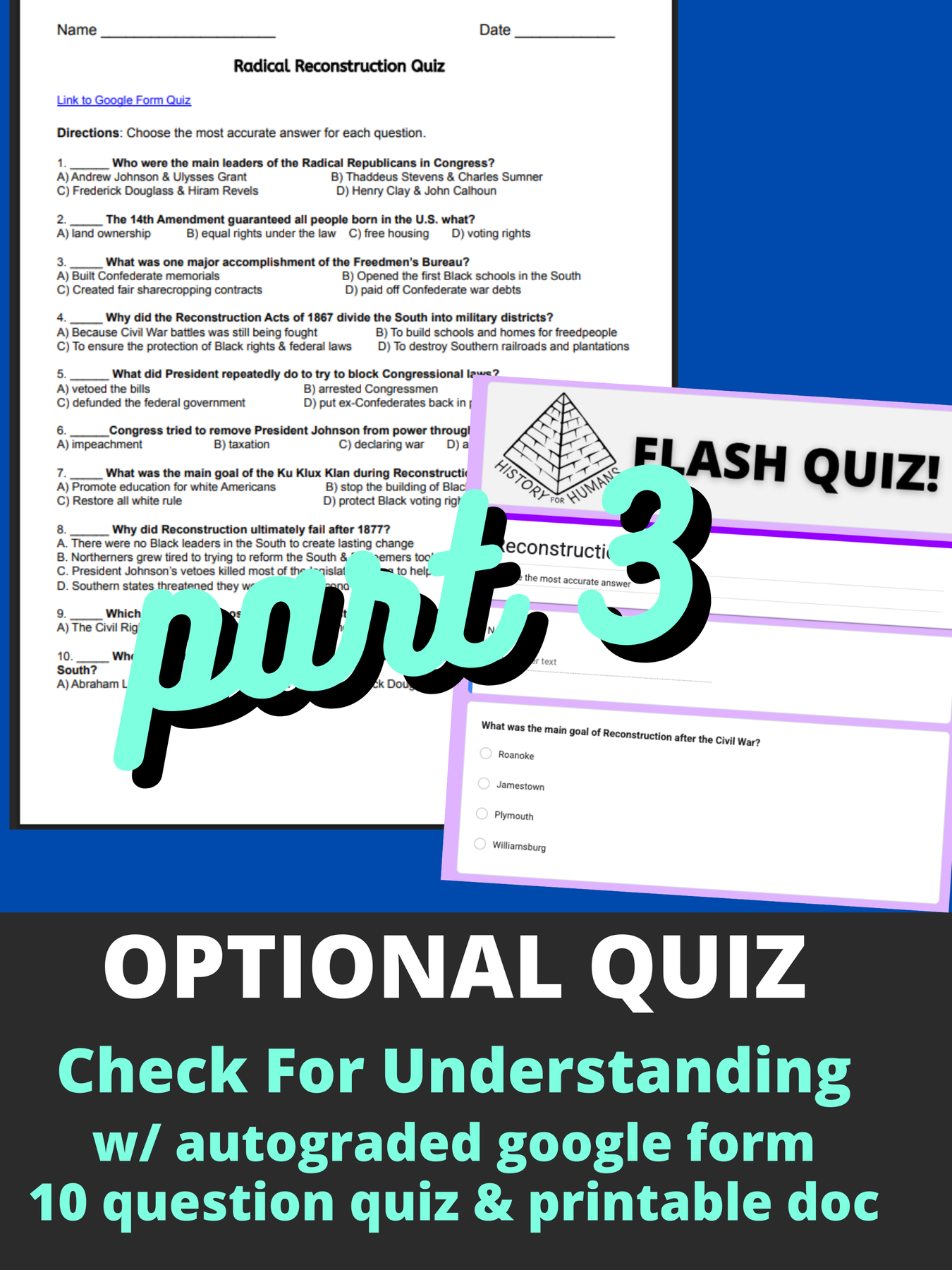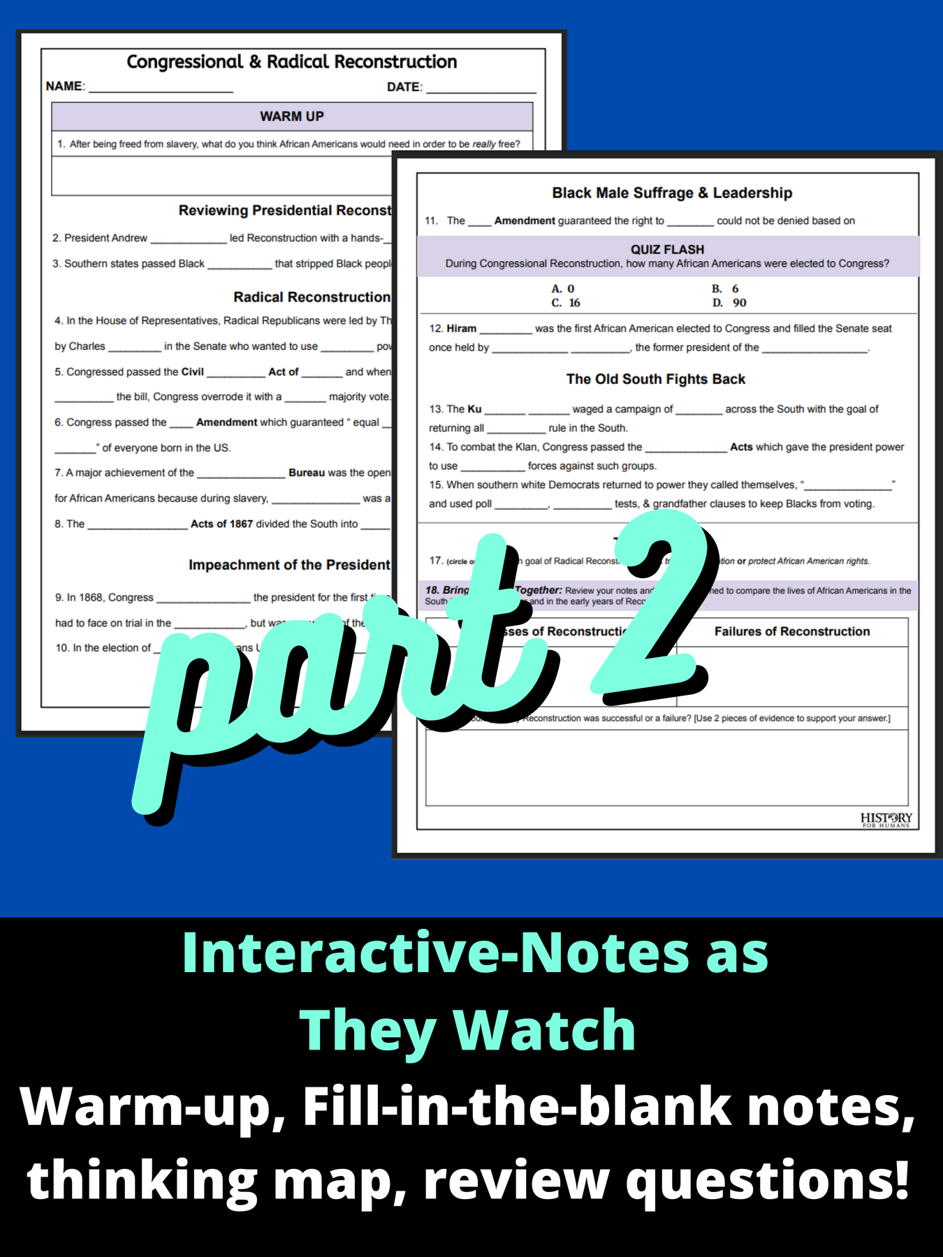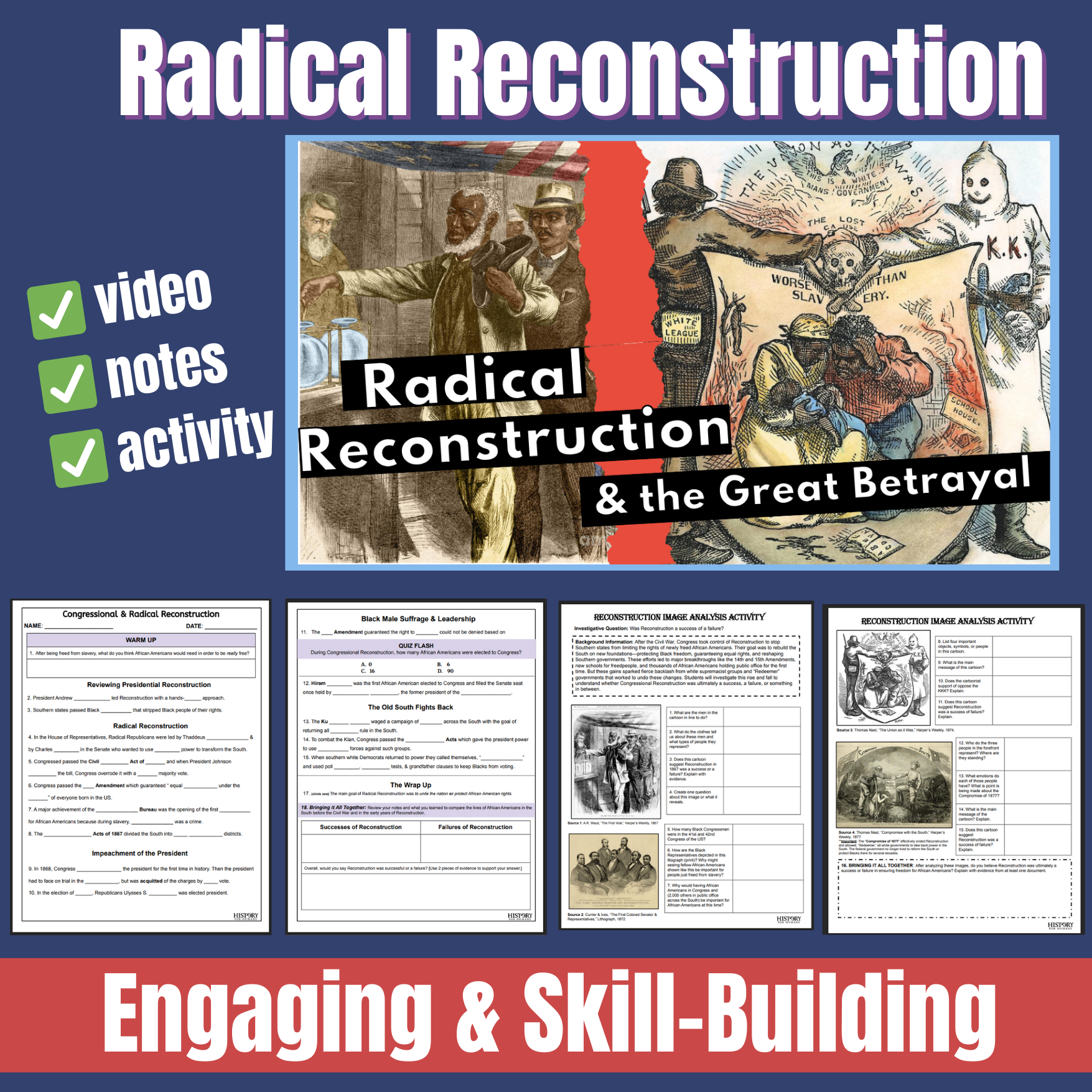 After the video and optional quiz, students analyze primary source images to determine if Reconstruction was successful or a betrayal. Its an engaging Reconstruction lesson that helps students build skills and improve their writing in a short and scaffold way! (See previews!)